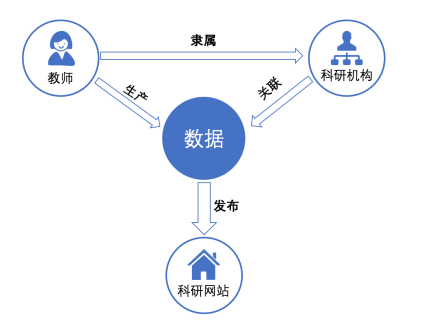 以数据为纽带,把人、组织机构、网站进行梳理和组织,实现数据一处维护,重复利用,满足不同类型的科研类主页发布。